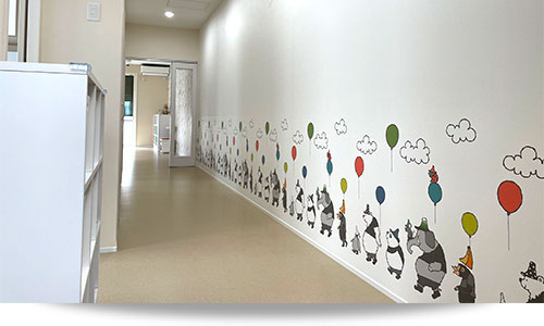 小さなお子様目線でも楽しめるかわいいイラストがお出迎えします。